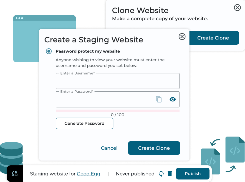What it does for you: Test updates, make design changes, or develop new features without impacting your live website. With one-click staging, you can safely experiment and ensure everything works perfectly before pushing changes to production. Cloning allows you to quickly duplicate any WordPress site to a new live or staging environment.